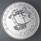Реверс: Стилизованное дерево с ветвями, на котором сидит голубь. Также стоит номинал «€ 5». | ||||