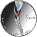 | Аверс: Изображено символическое плетение, которое символизирует судьбу трех балтийских стран-«сестёр». Отчеканена на Литовском монетном дворе. | ||