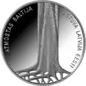 | Аверс: женская коса с изображениями флагов прибалтийских стран, номинал, надпись на латыш. BALTIJAS CEĻŠ 1989 2014 — «Балтийский путь 1989 2014». Реверс: ствол дерева с обнажёнными корнями, надпись на латыш. ATMOSTAS BALTIJA — «Пробуждение Балтии» и названия прибалтийских стран на их официальных языках. Гурт: гладкий с надписью на латыш. LATVIJAS BANKA ♦ LATVIJAS REPUBLIKA ♦ — «Банк Латвии ♦ Латвийская Республика ♦». Отчеканена на Королевском монетном дворе Нидерландов. Масса: 22,00 г. Диаметр: 35,00 мм. Тираж: 10 000 шт. | ||