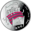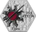 | Аверс: стилизованные фигуры 12 человек, окруживших флаг ЕС, надписи на латыш. LATVIJA — «Латвия» и «1985—2015», знак монетного двора, по краю — 12 звёзд. Отчеканена на Государственном монетном дворе в Баден-Вюртемберге (Германия). | ||