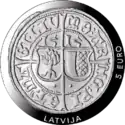 | Аверс: герб Латгалии, название государства, год выпуска, по краю — 12 звёзд. Отчеканена на Государственном монетном дворе в Баден-Вюртемберге (Германия). | ||