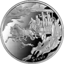Монеты номиналом 5 евро чеканятся из серебра 925 пробы в качестве proof.