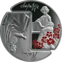 | Аверс: фирменный знак мастерской «Балтарс», название государства, номинал и год выпуска. Реверс: роспись по фарфору Романа Суты «Танец». Гурт гладкий. Отчеканена на Литовском монетном дворе. Масса: 18,00 г. Диаметр: 38,61 мм. Тираж: 5000 шт. | ||