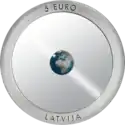 | Аверс: в серебряном кольце — вставка из прозрачного материала Perlucor и вставка из серебра с цветным изображением Земли, название государства и номинал. Реверс: земной шар, год выпуска, надпись на латыш. ZEME — «Земля». Гурт гладкий. Отчеканена на Литовском монетном дворе. Масса: 20,00 г. Диаметр: 40,00 мм. Тираж: 5000 шт. |