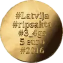 На реверсе — номинал, карта ЕС, 12 звёзд. Гурт — рубчатый с надписью на латыш. DIEVS * SVĒTĪ * LATVIJU * — «Боже, благослови Латвию». Тираж каждой — до 1 000 000 шт.