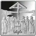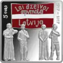 | Аверс: группа людей с транспарантом в виде флага Латвии с надписью на латыш. Lai dzeivoi apvinota Latvija — «За единую Латвию», годы юбилея и номинал. Реверс: группа женщин с ребёнком на фоне распятия, надпись на латыш. Latgola — «Латгалия». Гурт гладкий. Отчеканена фирмой Faude & Huguenin SA (Швейцария). Масса: 26,00 г. Размеры: 32×32 мм. Тираж: 3000 шт. |