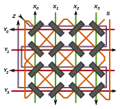 Матрица памяти состоит из N² кольцеобразных сердечников, нанизанных на пересечения перпендикулярных проводов возбуждения X1…XN и Y1…YN. Через все сердечники проплетается один провод считывания и один провод запрета. Таким образом, матрица позволяет считывать или записывать биты только последовательно.
