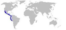 Обитает в восточной части Тихого океана у берегов Калифорнии и Мексики вплоть до Перу, от 31° с.ш. до 18° ю.ш. Обитает на глубинах 15—192 м, средняя глубина 15—24 м[2].