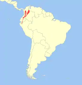 Обитает как в сухих, так и во влажных лесах, встречаясь на всех ярусах леса. На землю спускается очень редко. Ареал простирается от Колумбии до Эквадора и Панамы.