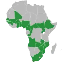 Зелёный, жёлтый и красный (к ним нередко добавляются также чёрный, зелёный иногда заменяется синим, а жёлтый — белым) — используются на флагах большинства стран Африки. Эти цвета взяты из флага Эфиопии.