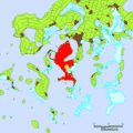 Остров Пангаимоту (красный цвет), желтым выделена мелководная лагуна острова.