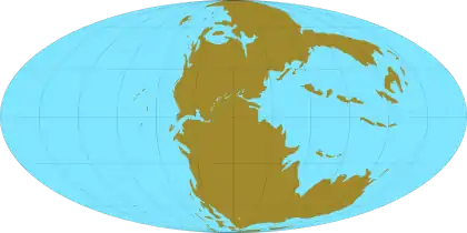 ![]() Пангея, середина позднего триаса (220 миллионов лет назад) | |