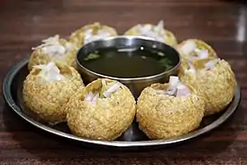 Пани пури — традиционное блюдо в Индии. Представляет собой небольшие (чуть больше куриного яйца) шарики из теста , обжаренные в масле. Перед употреблением шарик обычно продавливают пальцем и наливают внутрь бульон с различными специями и добавками. Данное блюдо особо популярно у уличных торговцев.