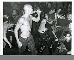 Стирание барьера между музыкантами и аудиторией занимает центральное место в концертной этике панка[68]. Активное участие фанатов — важный элемент каждого шоу; во время первой волны панк-движения это происходило в конфронтационной манере, соответствующей бунтарскому духу панка. Так, британские группы Sex Pistols и The Damned намеренно оскорбляли и всячески провоцировали аудиторию, чтобы добиться эмоциональной реакции. Дэйв Лэнг выделял три основные формы реакции аудитории на подстрекание: бросание банок из-под пива в музыкантов, вторжение на сцену и плевки или так называемый «гоббинг»[69]. В хардкор-среде вторая стадия часто является прелюдией к стэйдж-дайвингу. Помимо множества фанатов, формировавших свои панк-группы или присоединявшихся к существующим, зрители также являлись важным элементом движения — в Британии издавались множество любительских периодических изданий, посвящённых панк-року. По словам Лэнга, панк «был первым музыкальным жанром, который порождал фэнзины в крупных масштабах»[70].