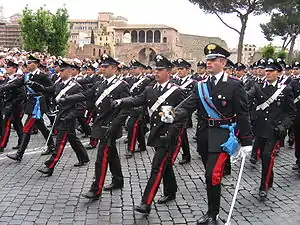 Итальянские карабинеры на параде с белыми бандольерами.