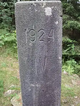 На макушке горы, которая расположена за 50-70 м от основной тропы расположен столбик № 1 Чехословацко-польской границы. Сам столбик без номера, хотя далее в направлении перевала Легионов встречаются с пометками II / 1, II / 3 и т. д.. В отличие от других пограничных столбиков состояние этого можно констатировать как отличное.