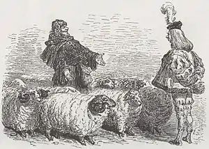В четвёртой книге «Гаргантюа и Пантагрюэля» Рабле один из главных героев, Панург, поссорился с купцом по прозвищу Индюшонок (фр. Dindenault). После показного примирения, устроенного по просьбе Пантагрюэля, Панург стал торговать у купца какого-то из его баранов. Заплатив требуемую цену, Панург выбрал из стада барана «самого красивого и крупного». Пока купец хвастался удачно заключённой сделкой