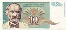 Портрет Панчича на Югославской банкноте в 10 динаров., 1994