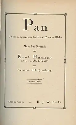 Предмет романа. Лейтенанта Глана, живущего отшельником в лесу, любят две женщины — Ева и Эдварда. Он тоже любит их, не зная, кому отдать предпочтение. Стихия любви захватывает героев, и как любая стихия, любовь опасна, и, словно мифический Пан, требует жертв.