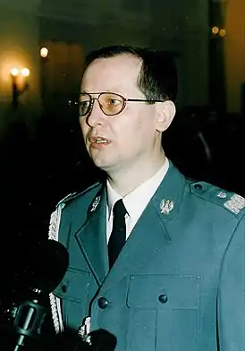 По образованию — профессиональный полицейский (Высшая офицерская школа полиции в Щитно, 1983) и кандидат права (Лодзинский университет, 1990). С 1979 года в милиции. В 1995 году стал заместителем главного коменданта полиции, 3 января 1997 года назначен главным комендантом полиции в чине инспектора полиции (аналог полковника). 3 мая того года был произведён в над-инспекторы полиции (аналог бригадного генерала). Должность главного коменданта полиции занимал до 29 января 1998 года.