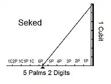 Древнеегипетский термин «секед» обозначал, с современной точки зрения, котангенс угла (ctg α). В древности он измерялся как длина отрезка по измерительной линейке угломера, который также назвался «секед». Длину измеряли в ладонях и пальцах (1 ладонь = 4 пальца). Математически он находился через отношение половины основания к высоте.