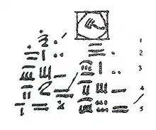 Египетские дроби передавались предлогом r, который выражает отношение. Иероглифически этот предлог передавался знаком
