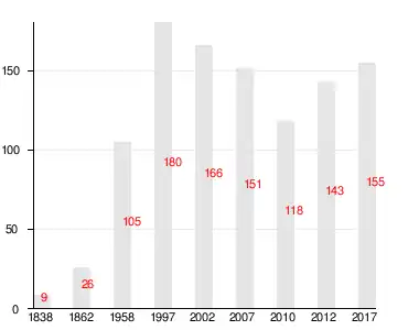 | 1838 | 1862 | 1997 | 2007[20] | 2010[21] | 2012[22] | 2017[23] |