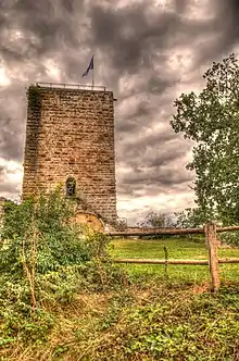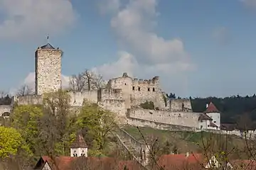 Мощная средневековая цитадель замка считается одним из важнейших памятников эпохи Гогенштауфенов в Баварии. Сохранившаяся 25-метровая башня ранее была ещё выше. Длина каждой из сторон квадратного основания конструкции составляет около 11,3 метра. Толщина кладки достигает 3,3 метра.