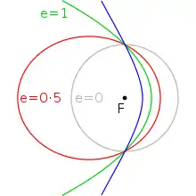 Параболическая траектория — в астродинамике и небесной механике кеплерова орбита, эксцентриситет которой равен 1. Если тело удаляется от притягивающего центра, такая орбита называется орбитой ухода, если приближается — орбитой захвата. Иногда подобную орбиту называют орбитой C3 = 0 (см. Характеристическая энергия).
