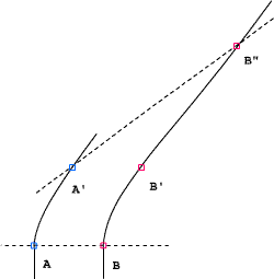 Это можно проиллюстрировать следующим образом. Смещение кораблей относительно своих исходных позиций — вдоль оси СО — как функция времени может быть записана в виде . Эта функция, вообще говоря, зависит от функции тяги двигателей, но важно, что она одинакова для обоих космических кораблей. Поэтому положение каждого корабля как функция времени будет: