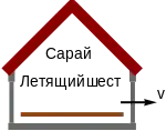 ![]() Рисунок 1: Обзор сарая и шеста в состоянии покоя | ![]() Рисунок 2: В СО сарая шест подвергается сокращению длины и помещается в сарай. | ![]() Рисунок 3: В СО шеста сарай подвергается сокращению длины и шест чересчур большой, чтобы поместиться в сарай. |