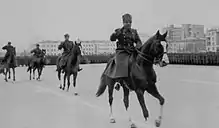Командовал парадом командующий 60-й армией генерал-лейтенант Максим Пуркаев. Принимал парад маршал Советского Союза Климент Ворошилов. После отдачи рапорта военачальники объехали войска и поздравили их с праздником, после чего Ворошилов с трибуны произнёс речь. По её окончании прозвучал салют из 40 артиллерийских залпов. По команде Пуркаева начался торжественный марш[9].
