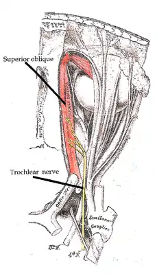 Паралич блокового нерва — условие, которое вызывает слабость или паралич верхней косой мышцы. Это условие часто вызывает вертикальное или вертикальное вблизи двойное зрение, так как ослабленная мышца не обеспечивает движения глаз друг за другом.