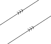 В евклидовой геометрии параллельными прямыми называются прямые, которые лежат в одной плоскости и не пересекаются[1]. В другом варианте определения совпадающие прямые также считаются параллельными[2][3].