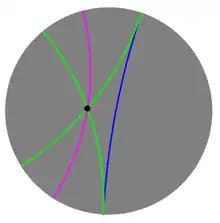 Равнобежные прямые называются также асимптотически параллельными или просто параллельными. Все остальные прямые, не пересекающие данную, называются ультрапараллельными или расходящимися[5].