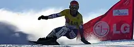 ![]() Спортсмен на трассе параллельного гигантского слалома | |