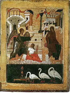 ![]() Прядущие Богородица и девушка | |