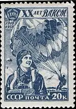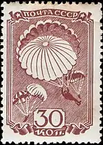 Марка СССР, 1949 г. ЦФА#1416. Парашютный спорт.