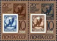 Горизонтальная пара почтовых марок СССР с полями (1988). Художник В. Коваль (ЦФА [АО «Марка»] № 5903—5904)