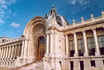 В Малом дворце, разработанном Шарлем Жиро и построенном прямо напротив Гран-Пале, был монументальный вход (оба входа были разработаны архитектором Жиро). Оба здания имели ряды массивных колонн, которые служили мощный вертикальным элементом для сбалансирования большой ширины зданий. Однако, самой оригинальной особенностью Малого дворца был интерьер; в нём Жиро в полной мере использовал материал железобетон для создания величественной винтовой лестницы и широкого входа, построил огромные люки и окна, которые пропускают много света и превратил интерьер в единое пространство[3].