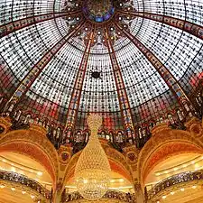 Арт-нуво купол Галери Лафайет (1912) обеспечивает естественное освещение уровней во внутреннем дворе