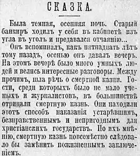 - Ан. Чеховъ «Сказка». (Первое издание рассказа) // Газета «Новое время», № 4613 от 1-го (13-го) января 1889 года. С. 1-2.