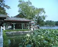 На северном берегу размещён Павильон 5 драконов : 5 соединённых павильонов со шпилями и традиционными китайскими карнизами, построенные во времена династии Мин.