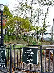 - Ralph Bunche Park - Historical Sign. New York City Department of Parks & Recreation. Дата обращения: 14 декабря 2012. Архивировано 17 декабря 2012 года.
