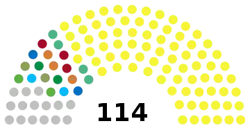 | Голосов | % | Мест | Голосов | % | Мест | |||||||||