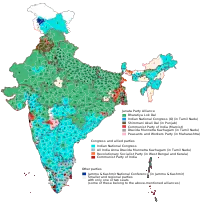 ![]() Карта распределения голосов по регионам Зелёный - партия из альянса Джаната, голубой - ИНК | |||