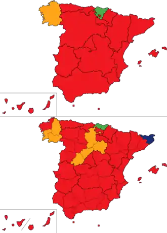 ![]() Карта результатов выборов в Конгресс депутатов по провинциям | |||