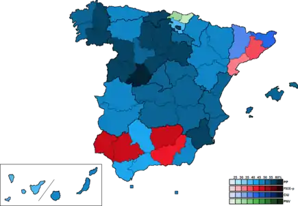 ![]() Карта результатов выборов в Конгресс депутатов по провинциям | |||