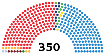 | Прошлые выборы | 125 (34,2 %) | 183 (44,5 %) | 15 (4,2 %) |