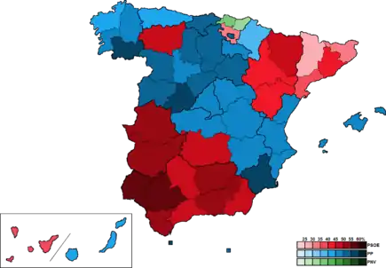 | Результат выборов | Победу одержала Испанская социалистическая рабочая партия, получив 47 % мест в Конгрессе депутатов | ||